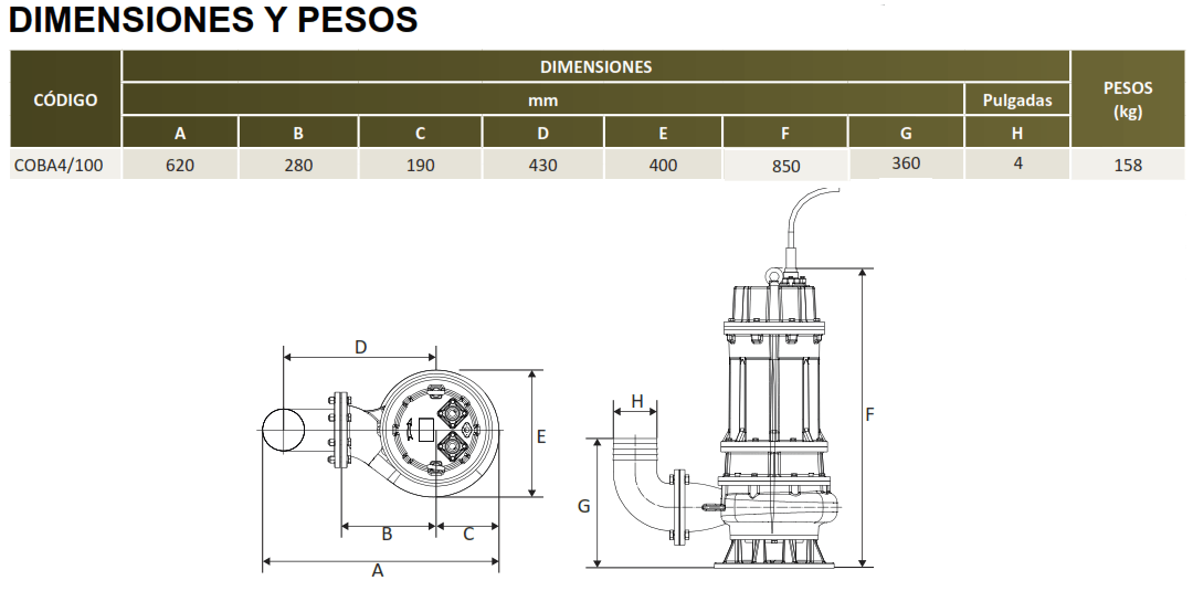 | COBÁ4/100/3460 | 10 | 3 FASES | 460V | 4'' | 2" |