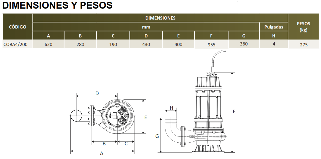 | COBÁ4/200/3230 | 20 | 3 FASES | 230V | 4'' | 2" |