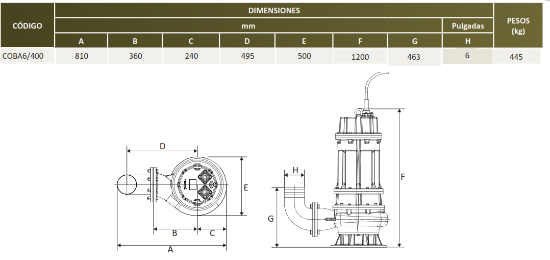 | COBÁ6/400/3460 | 40 | 3 FASES | 460V | 6'' | 2.7" |