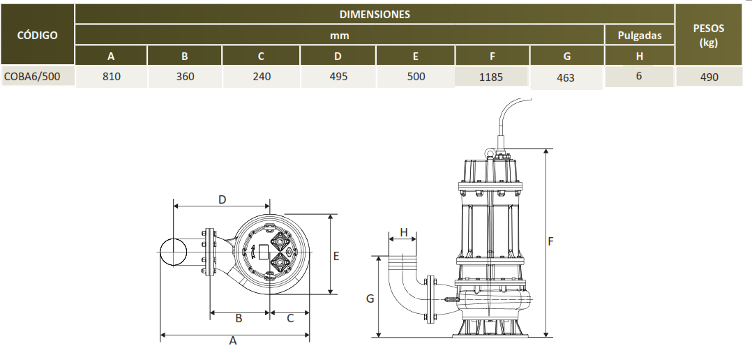 | COBÁ6/500/3460 | 50 | 3 FASES | 460V | 6'' | 2.7" |