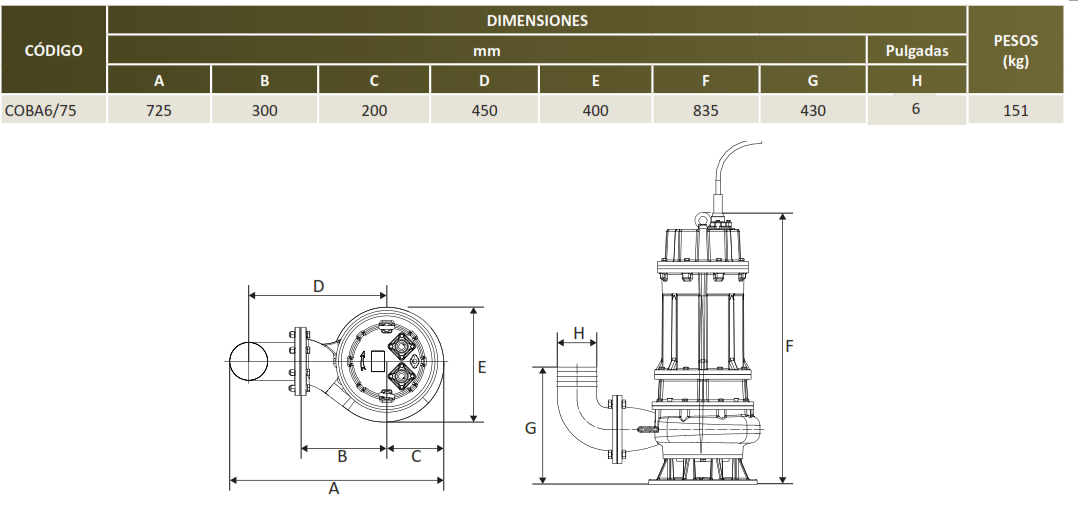 | COBÁ6/75/3460 | 7.5 | 3 FASES | 460V | 6'' | 2" |