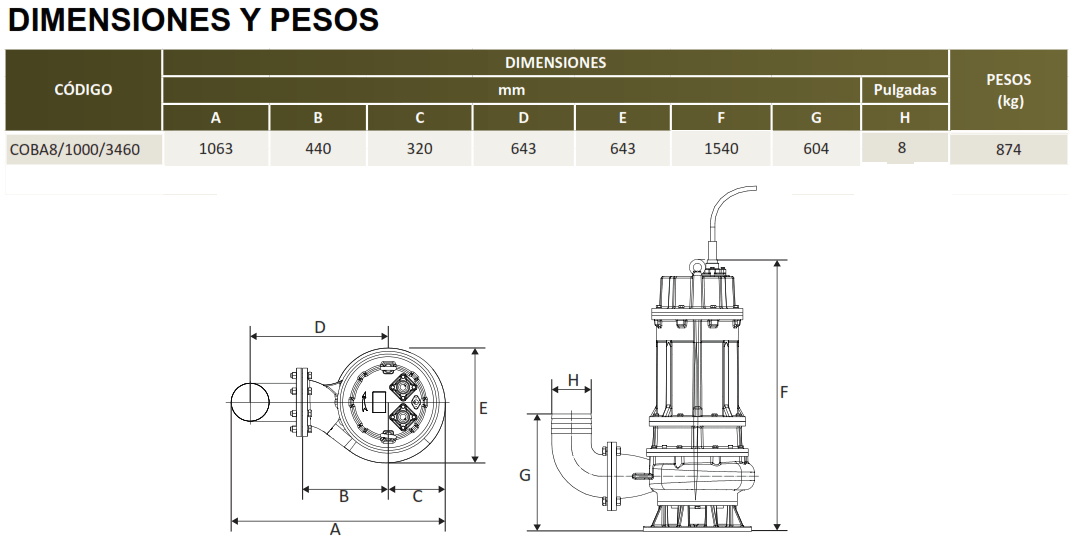 | COBÁ8/1000/3460 | 100 | 3 FASES | 460V | 8'' | 3.14" |