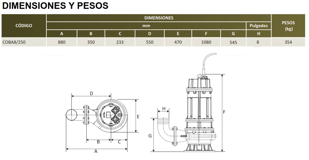 | COBÁ8/250/3460 | 25 | 3 FASES | 460V | 8'' | 2.5" |