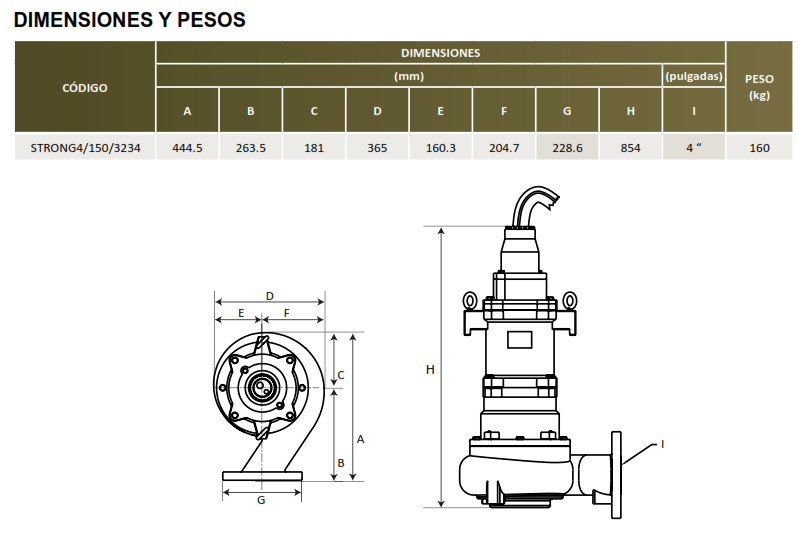 | STRONG 4/150/3234 | 15 | 3 FASES | 230V/460V | 4'' | 3" |
