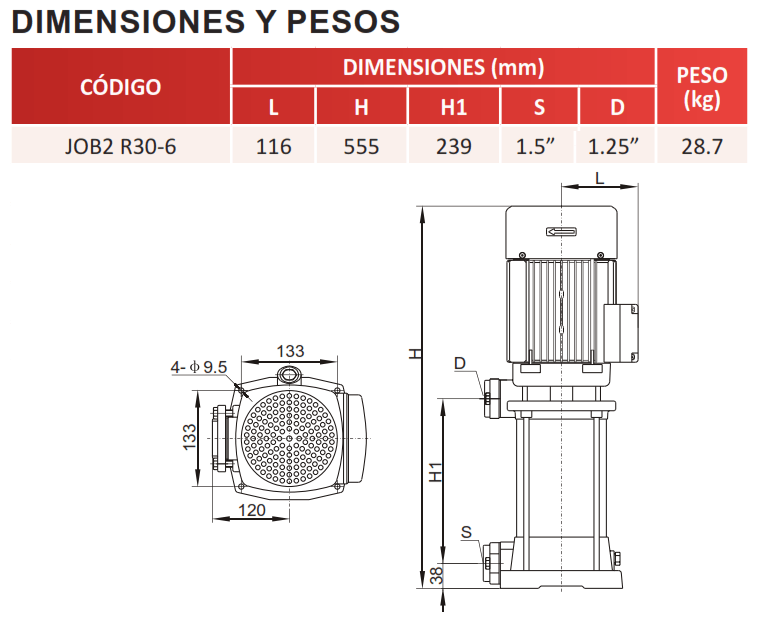 | JOB2 R30-6 | 3 | 3 FASES | 230V/460V | 1.5" | 1.25" | 87 m / 124 Psi |