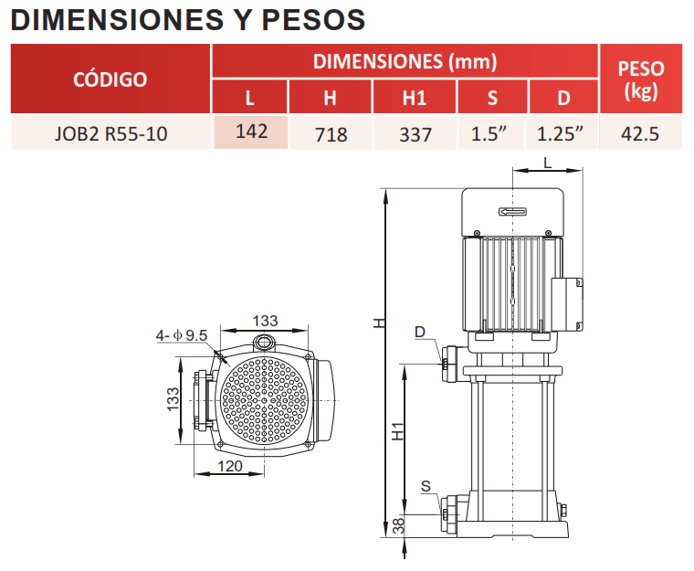 | JOB2 R55-10 | 5.5 | 3 FASES | 230V/460V | 1.5" | 1.25" | 145 m / 206 Psi |
