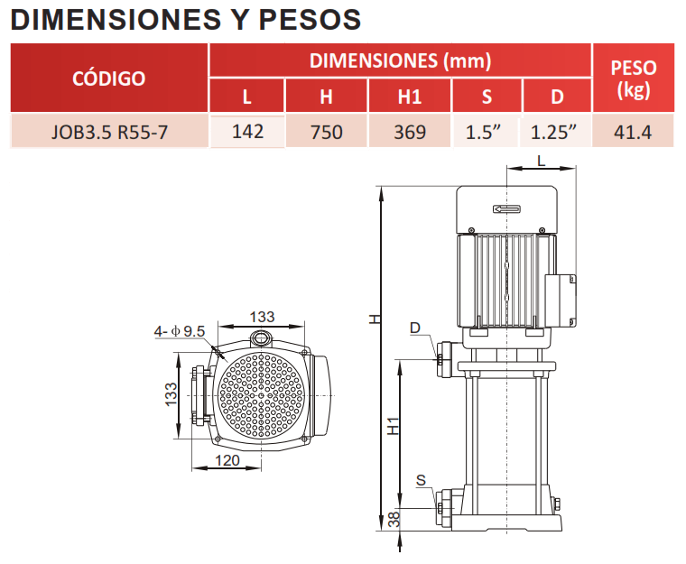 | JOB3.5 R55-7 | 5.5 | 3 FASES | 230V/460V | 1.5" | 1.25" | 90 m / 128 Psi |