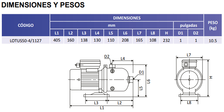 | LOTUS50-4/1127 | 3/4 | 1 FASE | 127V | 1" (25.40 mm) | 1" (25.40 mm) | 51 m / 72 Psi |